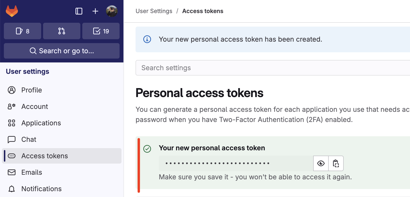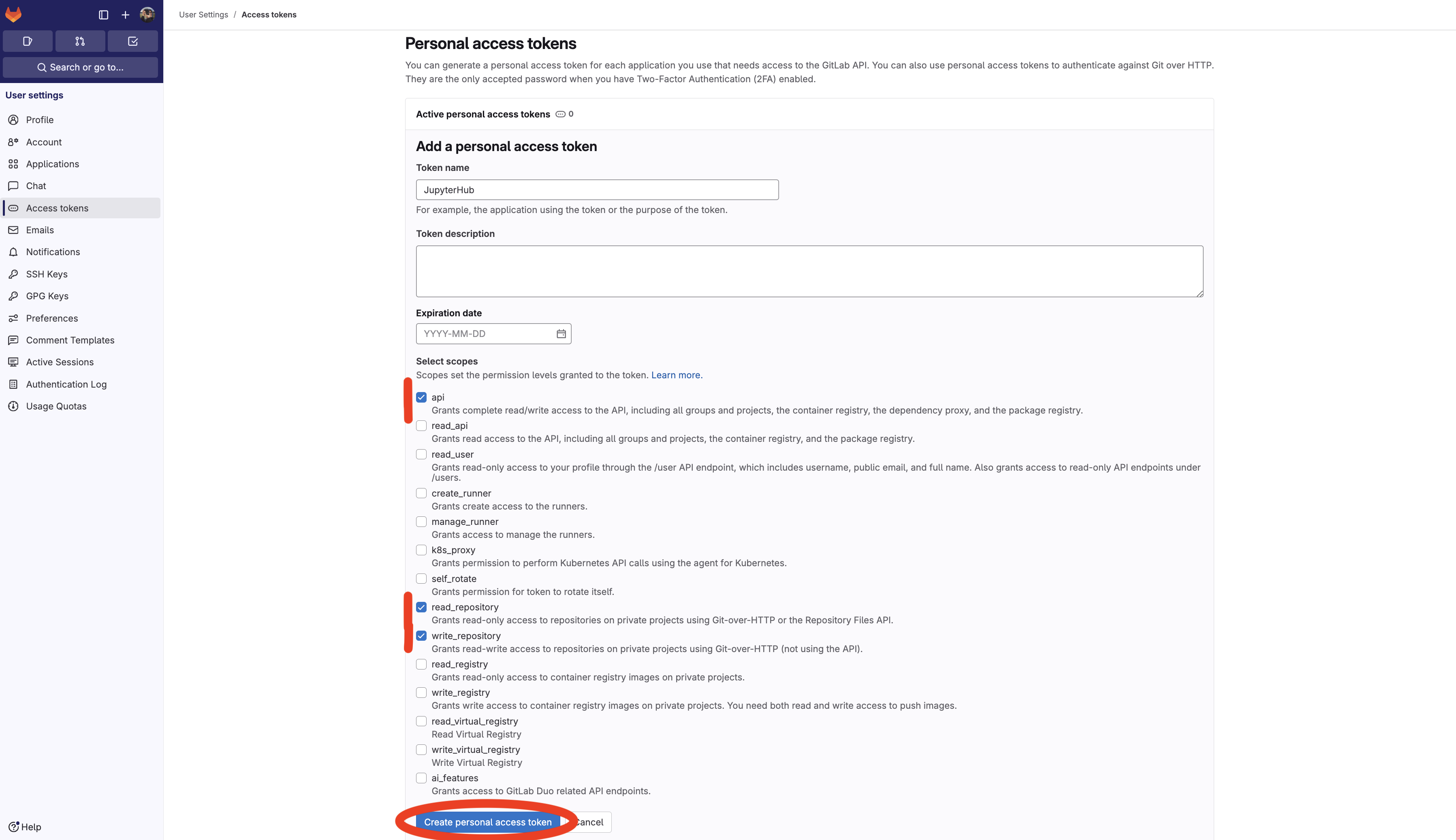 api,read_repositoryundwrite_repository. Klicke abschließend auf Create personal access token.